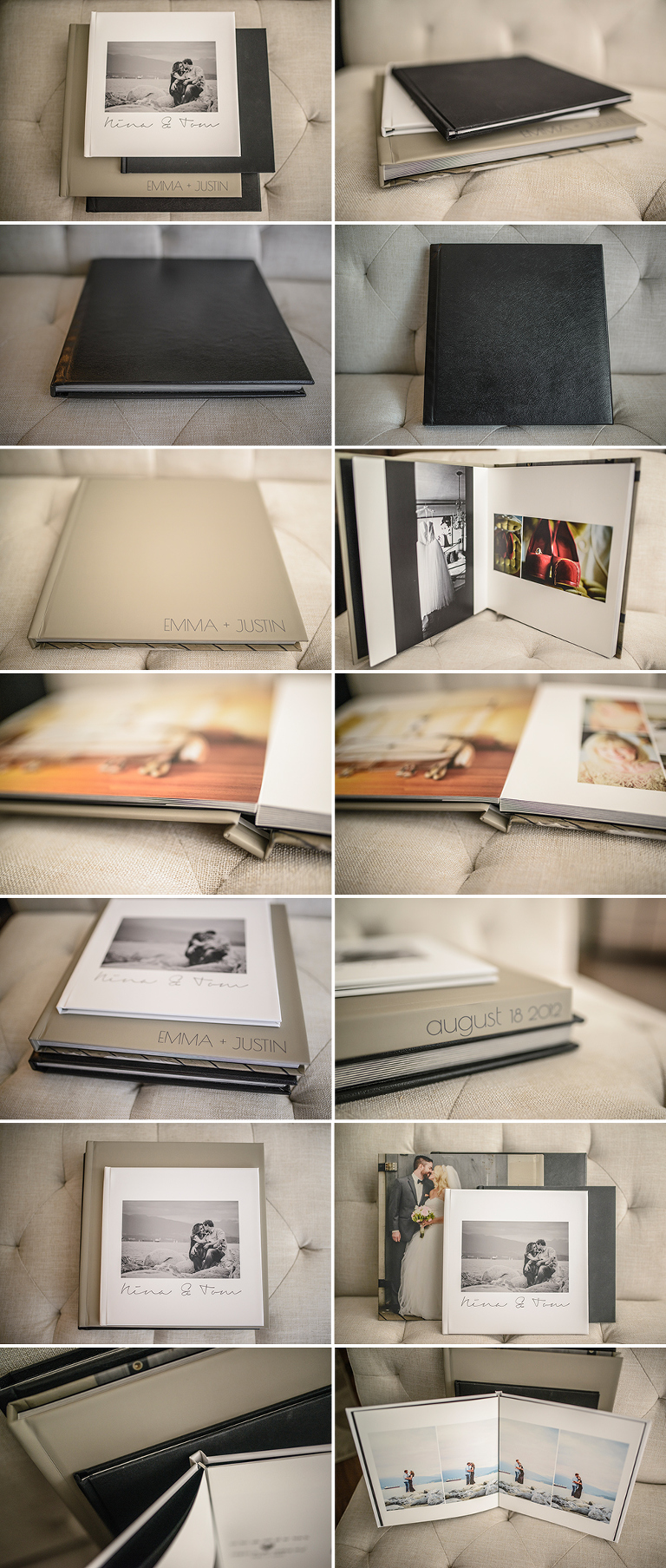Your wedding day photos are a gorgeous representation of you + your love & a custom album is the perfect way to display and preserve them for decades to come. Here’s a peek at a couple of our custom albums, however each and every one we create is made especially for you. Unique & totally yours.